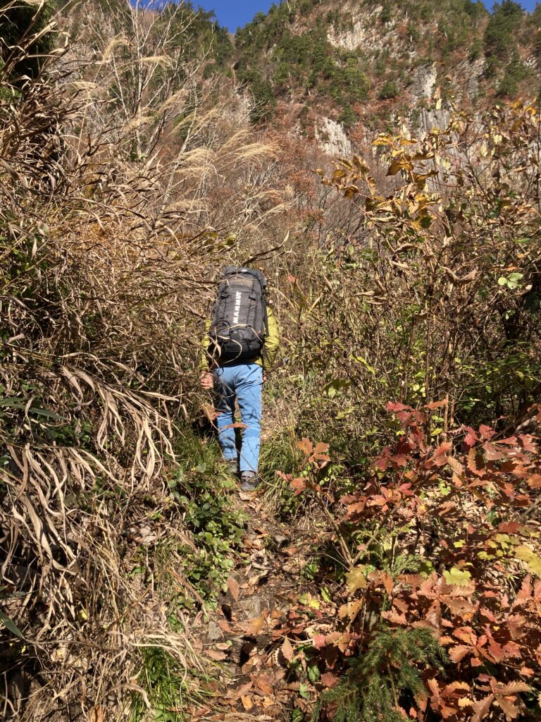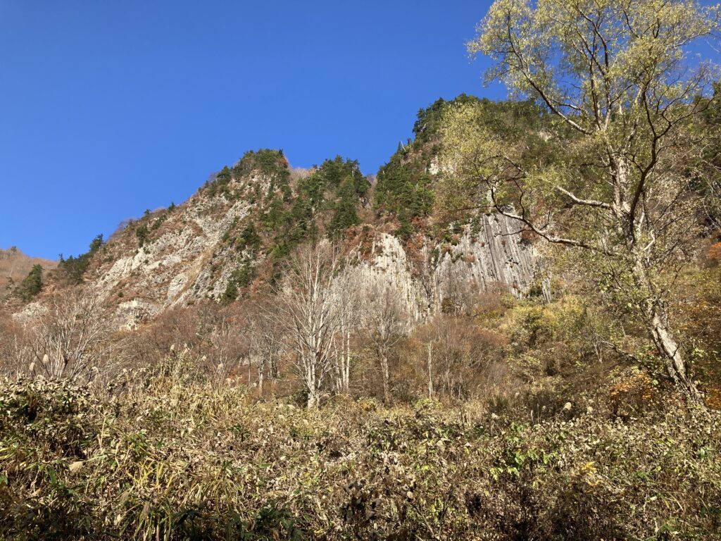 さらに崩壊して岩が降ってきそうなのでヘルメットを装着して基部へ向かう