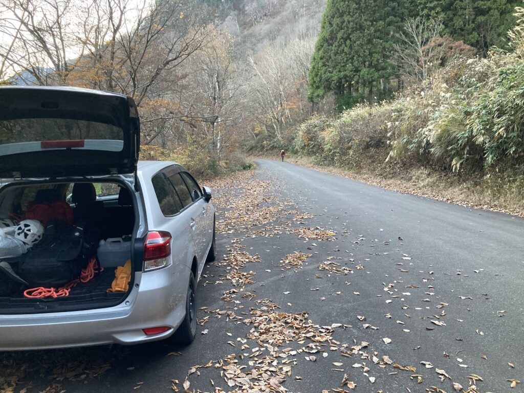 GoogleMapで「布岩展望地」という場所に車を停めて岩に向かう