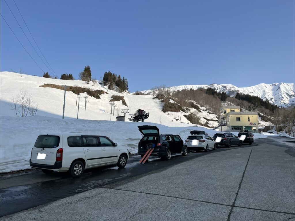 斜度が緩くなってからはまた漕ぎながら、滑りながら進む。最後にスキー場トップに合流してからは快適に滑走し、12:20頃登山口着。山頂から1時間かからないスピーディーな下山だった。